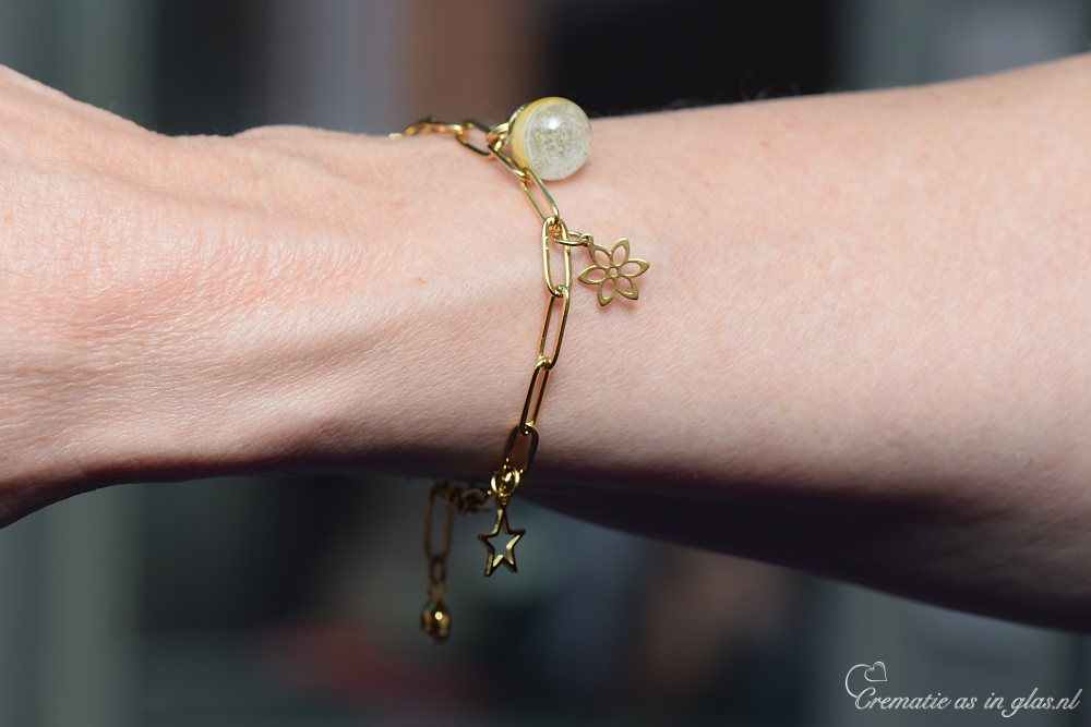 Een gedenk dames armband met crematie-as is een assieraad voor haar als dierbare herinnering